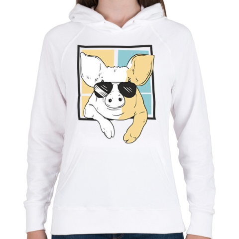 1 kép PRINTFASHION Napszemüveges malac - Női kapucnis pulóver - Fehér