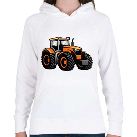 1 kép PRINTFASHION Narancssárga traktor - Női kapucnis pulóver - Fehér