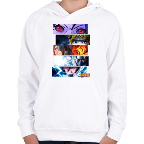 1 kép PRINTFASHION NARUTO montage - Gyerek kapucnis pulóver - Fehér