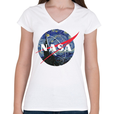 1 kép PRINTFASHION NASA (Van Gogh) - Női V-nyakú póló - Fehér