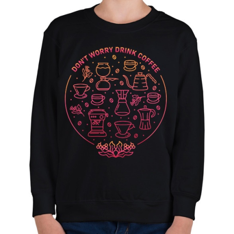 1 kép PRINTFASHION Ne aggódj, igyál kávét! - Gyerek pulóver - Fekete
