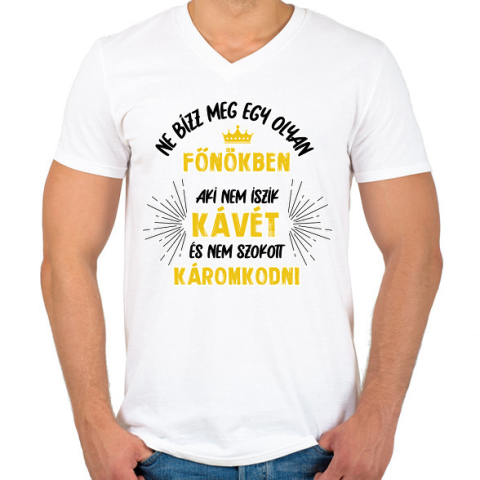 1 kép PRINTFASHION Ne bízz meg egy olyan főnökben - Férfi V-nyakú póló - Fehér