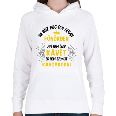 1 kép PRINTFASHION Ne bízz meg egy olyan főnökben - Női kapucnis pulóver - Fehér