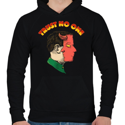 1 kép PRINTFASHION Ne bízz meg senkiben - Férfi kapucnis pulóver - Fekete