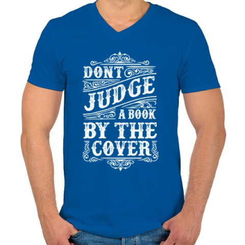 1 kép PRINTFASHION Ne ítélj a borító alapján! - Férfi V-nyakú póló - Királykék