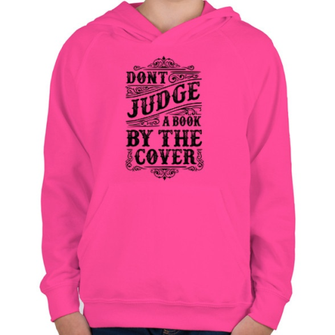 1 kép PRINTFASHION Ne ítélj a borító alapján! - Gyerek kapucnis pulóver - Fukszia