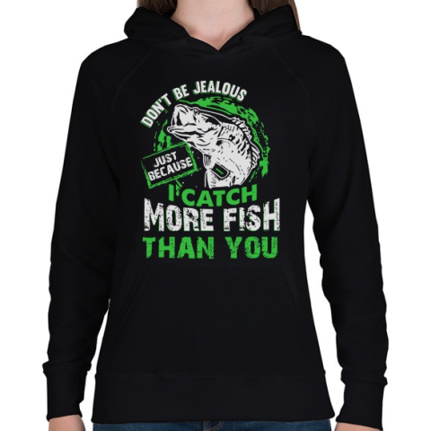 1 kép PRINTFASHION Ne légy irigy, amiért több halat fogok... - Női kapucnis pulóver - Fekete