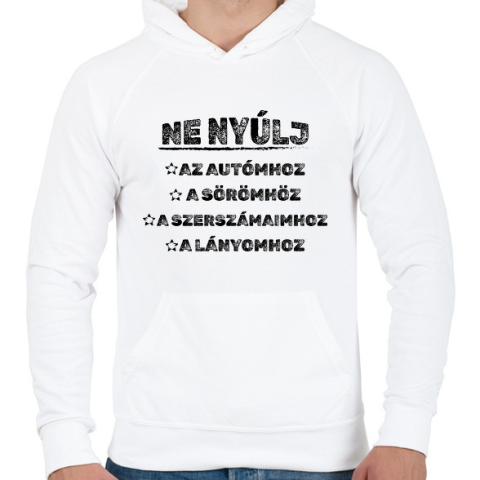 1 kép PRINTFASHION Ne nyúlj - Férfi kapucnis pulóver - Fehér