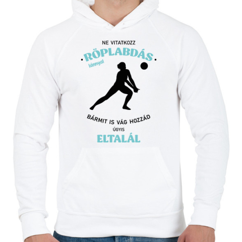 1 kép PRINTFASHION Ne vitatkozz röplabdás lánnyal - Férfi kapucnis pulóver - Fehér