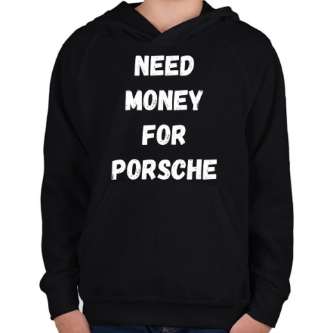 1 kép PRINTFASHION NEED MONEY FOR PORSCHE - Gyerek kapucnis pulóver - Fekete