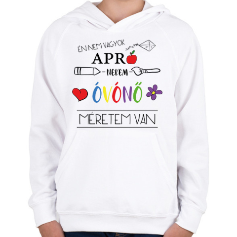 1 kép PRINTFASHION Nekem óvónő méretem van - Gyerek kapucnis pulóver - Fehér