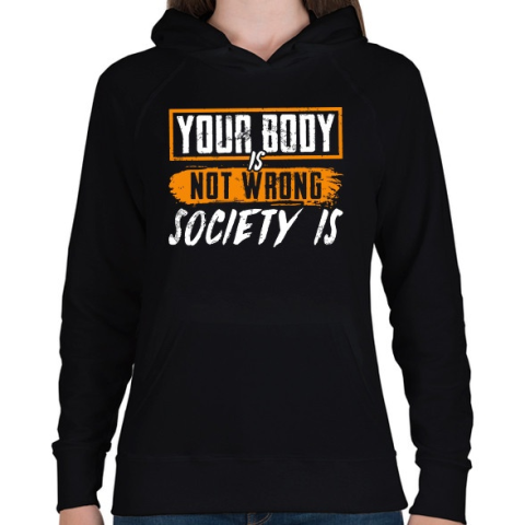 1 kép PRINTFASHION Nem a tested rossz, hanem a közösségi média - Női kapucnis pulóver - Fekete