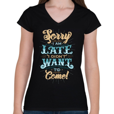 1 kép PRINTFASHION Nem akartam jönni - Női V-nyakú póló - Fekete