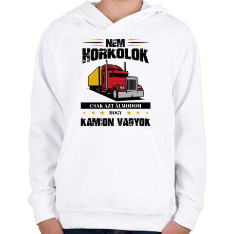 1 kép PRINTFASHION Nem horkolok - Kamion - Gyerek kapucnis pulóver - Fehér