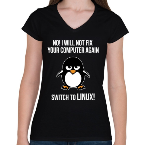 1 kép PRINTFASHION Nem javitom meg ujra, valts linuxra - Női V-nyakú póló - Fekete