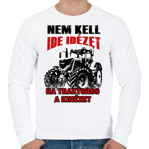 1 kép PRINTFASHION Nem kell ide idézet, ha traktoros a kinézet - Férfi pulóver - Fehér