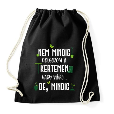 1 kép PRINTFASHION Nem mindig dolgozom a kertemen - Fehér - Sportzsák, Tornazsák - Fekete