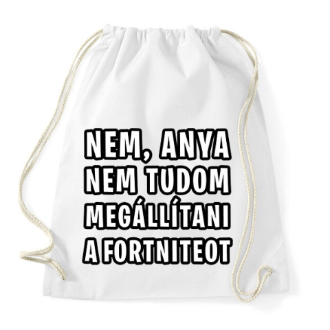 1 kép PRINTFASHION Nem tudom megállítani a Fortniteot - Sportzsák, Tornazsák - Fehér
