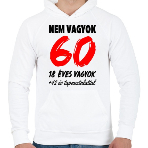 1 kép PRINTFASHION Nem vagyok 60! - Férfi kapucnis pulóver - Fehér