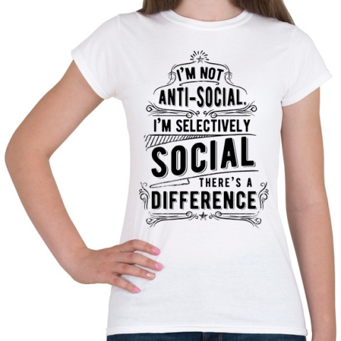 1 kép PRINTFASHION Nem vagyok antiszociális - Női póló - Fehér