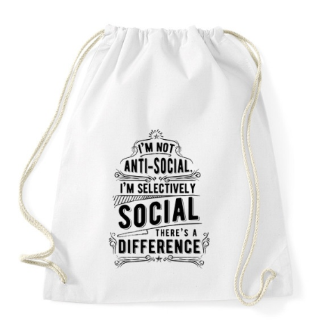 1 kép PRINTFASHION Nem vagyok antiszociális - Sportzsák, Tornazsák - Fehér