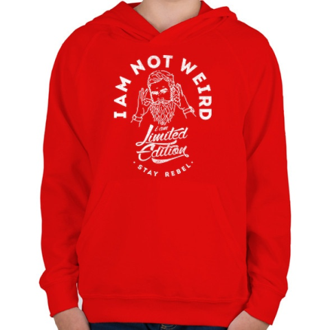 1 kép PRINTFASHION Nem vagyok furcsa - Gyerek kapucnis pulóver - Piros