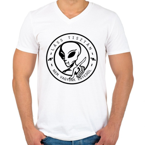 1 kép PRINTFASHION Nem Vagyunk Egyedül - Férfi V-nyakú póló - Fehér
