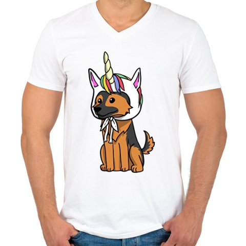 1 kép PRINTFASHION Német egyszarvújuhász - Férfi V-nyakú póló - Fehér