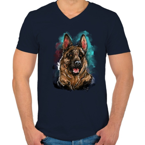 1 kép PRINTFASHION "Németjuci" watercolor - Férfi V-nyakú póló - Sötétkék