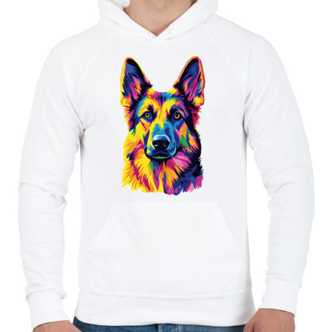 1 kép PRINTFASHION Németjuhász arc - Férfi kapucnis pulóver - Fehér