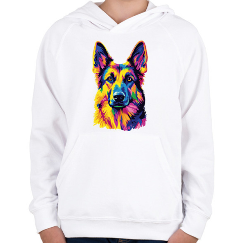 1 kép PRINTFASHION Németjuhász arc - Gyerek kapucnis pulóver - Fehér