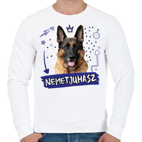 1 kép PRINTFASHION Németjuhász firka - Férfi pulóver - Fehér