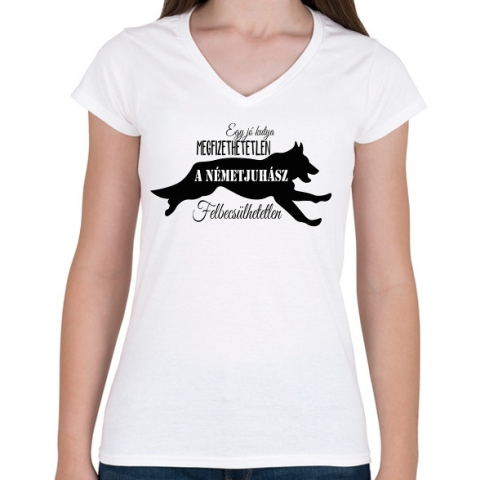 1 kép PRINTFASHION németjuhász - Női V-nyakú póló - Fehér
