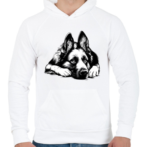 1 kép PRINTFASHION Németjuhász Sziluett - Férfi kapucnis pulóver - Fehér