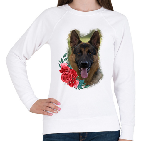 1 kép PRINTFASHION Németjuhász virággal - Női pulóver - Fehér
