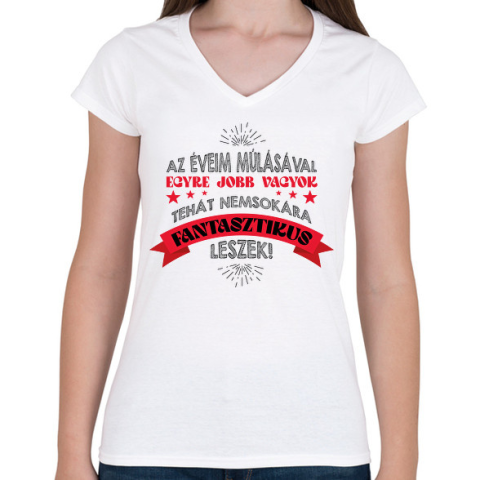 1 kép PRINTFASHION Nemsokára fantasztikus leszek - Női V-nyakú póló - Fehér