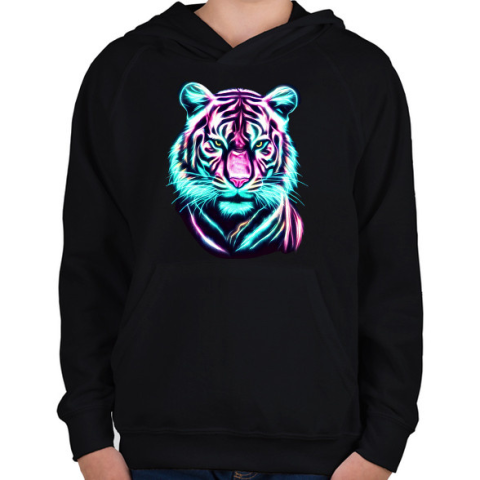 1 kép PRINTFASHION Neon tigris - Gyerek kapucnis pulóver - Fekete