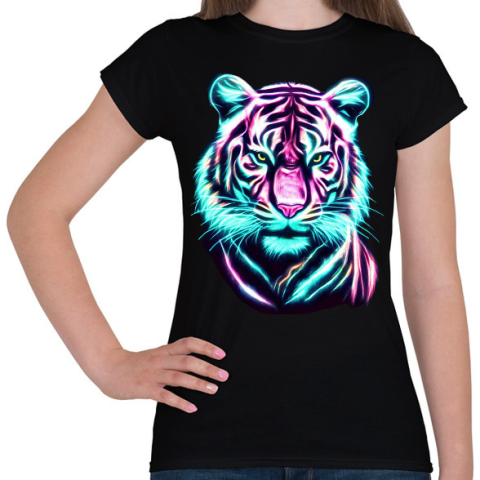 1 kép PRINTFASHION Neon tigris - Női póló - Fekete
