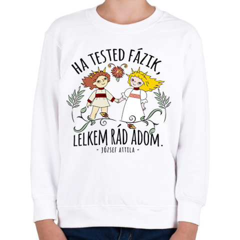 1 kép PRINTFASHION Népmese ha tested fázik lelkem rád adom - Gyerek pulóver - Fehér