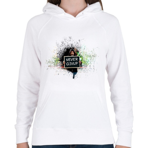 1 kép PRINTFASHION NEVER GIVEUP - Női kapucnis pulóver - Fehér