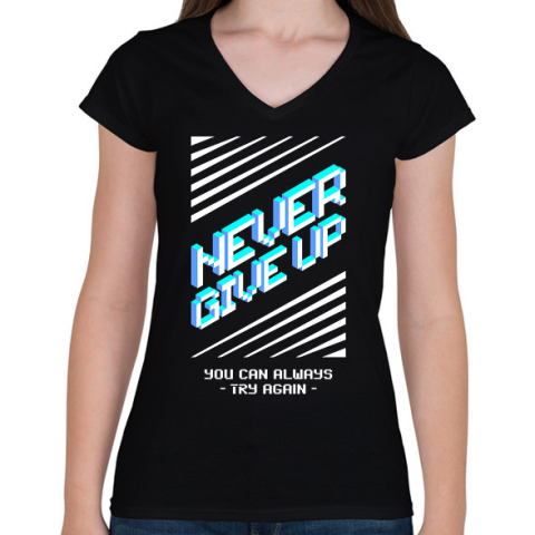 1 kép PRINTFASHION nevergiveup - Női V-nyakú póló - Fekete