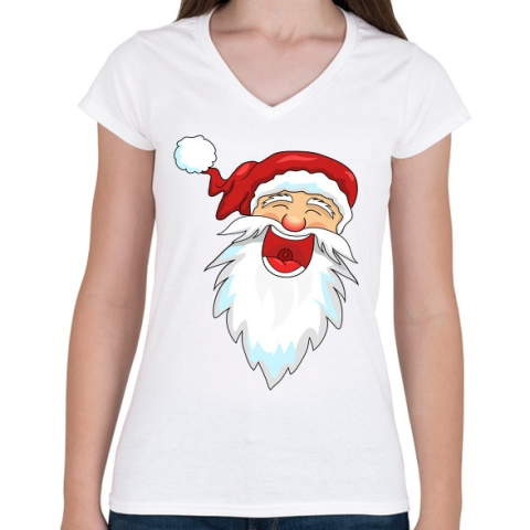 1 kép PRINTFASHION Nevető télapó - Női V-nyakú póló - Fehér
