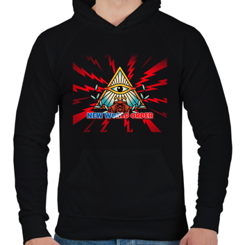 1 kép PRINTFASHION NEW WORLD ORDER - Férfi kapucnis pulóver - Fekete