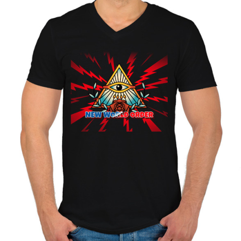 1 kép PRINTFASHION NEW WORLD ORDER - Férfi V-nyakú póló - Fekete