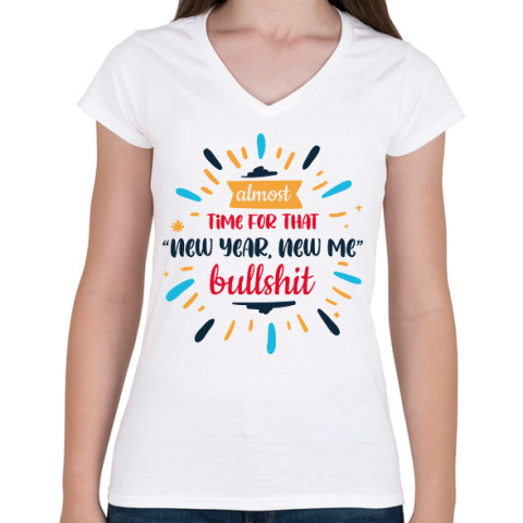 1 kép PRINTFASHION New year, new me - Női V-nyakú póló - Fehér