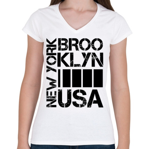 1 kép PRINTFASHION New York Brooklyn USA - Női V-nyakú póló - Fehér