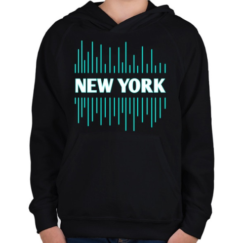 1 kép PRINTFASHION New York - Gyerek kapucnis pulóver - Fekete