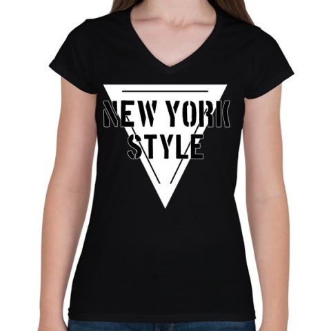 1 kép PRINTFASHION NEW YORK STYLE - Női V-nyakú póló - Fekete