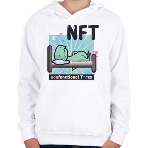 1 kép PRINTFASHION NFT - Nonfunctional T-rex - Gyerek kapucnis pulóver - Fehér