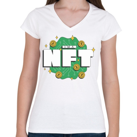1 kép PRINTFASHION NFT vagyok - non fungibe token - Női V-nyakú póló - Fehér